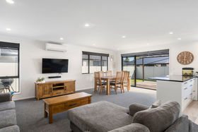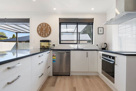 Situated amongst other new homes in Waitara, this single level near new brick property features 3 bedrooms, 2 bathrooms, open plan living and great indoor-outdoor flow onto the covered deck to ensure entertaining is a breeze. The gorgeous kitchen combines functionality & class with a Butlers Pantry, stone benchtop and breakfast bar to provide plenty of space for chatting over a glass of wine with friends while cooking. The bathrooms are an extra touch of luxury featuring fully tiled showers & waterfall showerhead in the ensuite. Relax and enjoy your morning coffee on the deck off the master bedroom which captures beautiful morning sun. Double glazing and a heat pump ensure complete comfort throughout the year. This home is fully fenced to provide safety for little ones or pets with a flat, easy-care section.